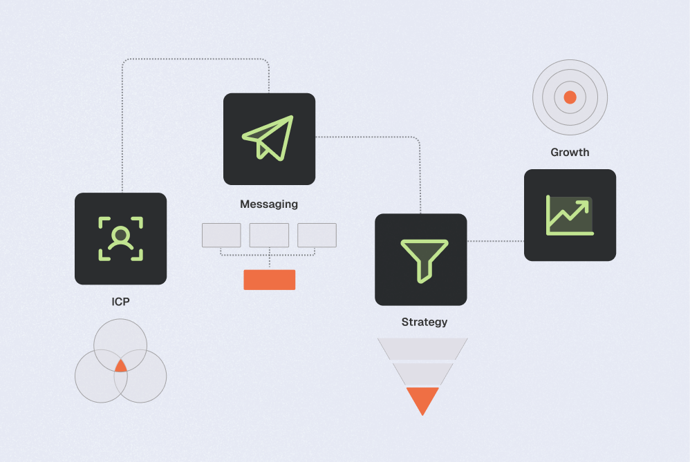 ICP definition, messaging architecture, funnel strategy, and growth priorities aligned.