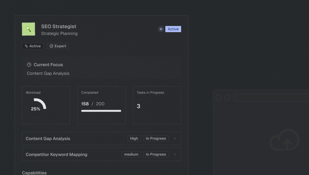 You know the problem. You're briefing four vendors who don't talk to each other. You're the data relay. Nothing compounds. We built something different. One senior operator managing AI agent teams that share data, learn from each other, and execute in concert. SEO informs content. Content fuels social. Paid amplifies organic winners. You never touch the technology. You get the results.