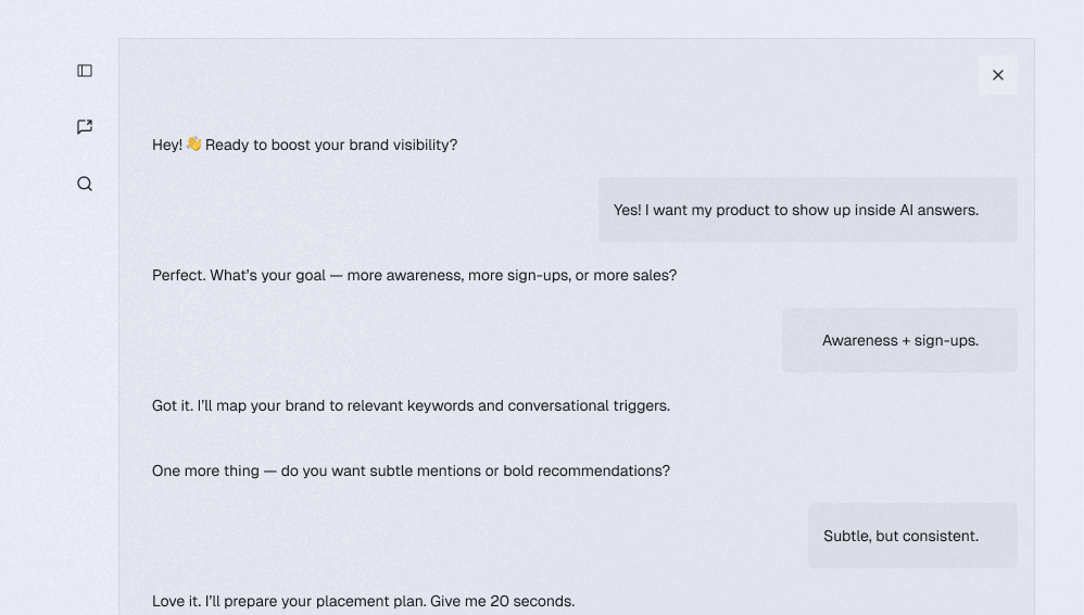 Brand voice modeling, positioning calibration, competitive context mapping. You never configure anything yourself.