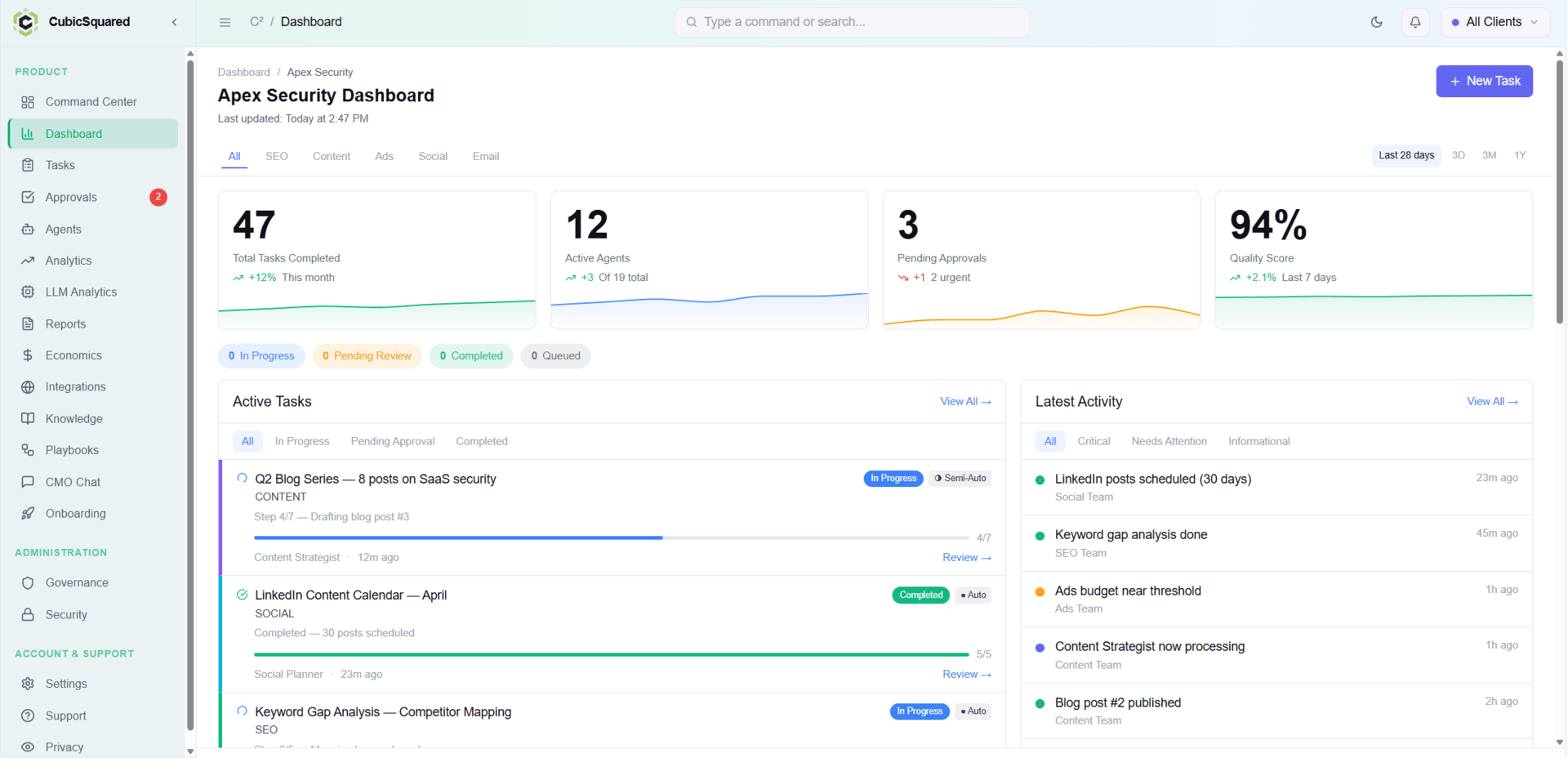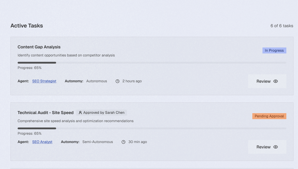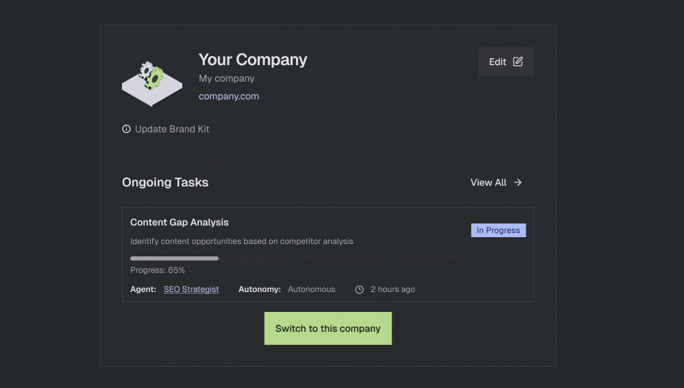 AI agent teams execute SEO, content, demand gen, paid ads, sales enablement, field marketing, and more as one unified system. Not fragmented across vendors. Integrated by design.